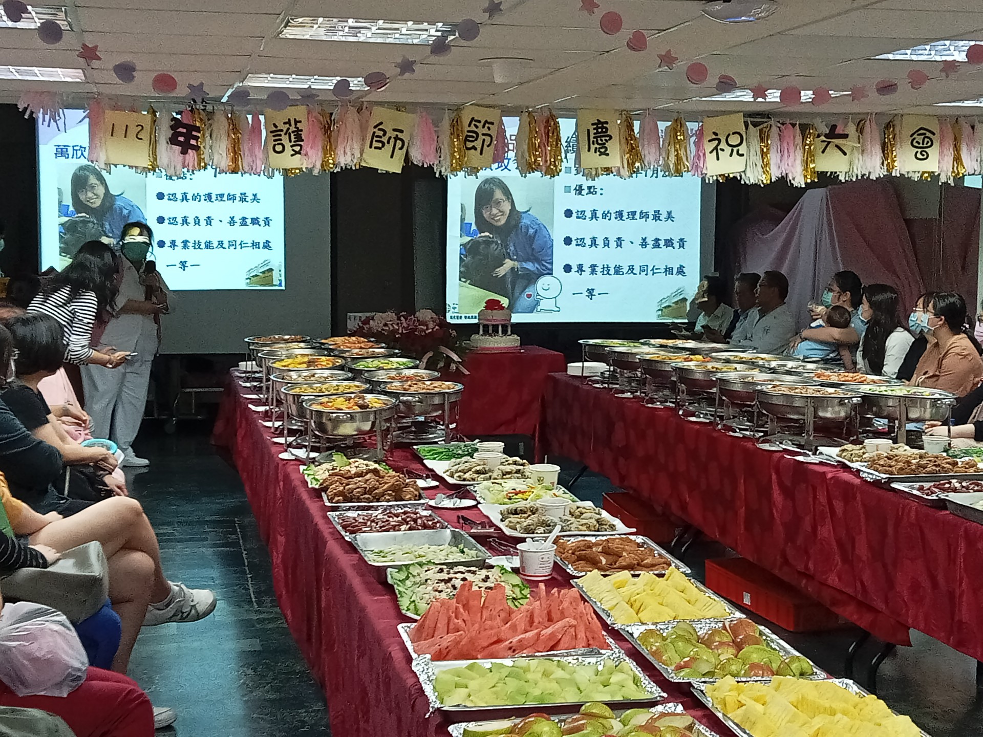 大會特邀陳福民董事長、朱益宏院長及施俊雄教授參加,長官也慷慨解囊,捐贈摸彩獎金供與會的護理師們同樂,現場氣氛溫馨且響應熱烈。現場並備有朱院長特地提供的美食佳餚供與會者享用,同仁在一片歡樂的氣氛下度過今年的護理師節。